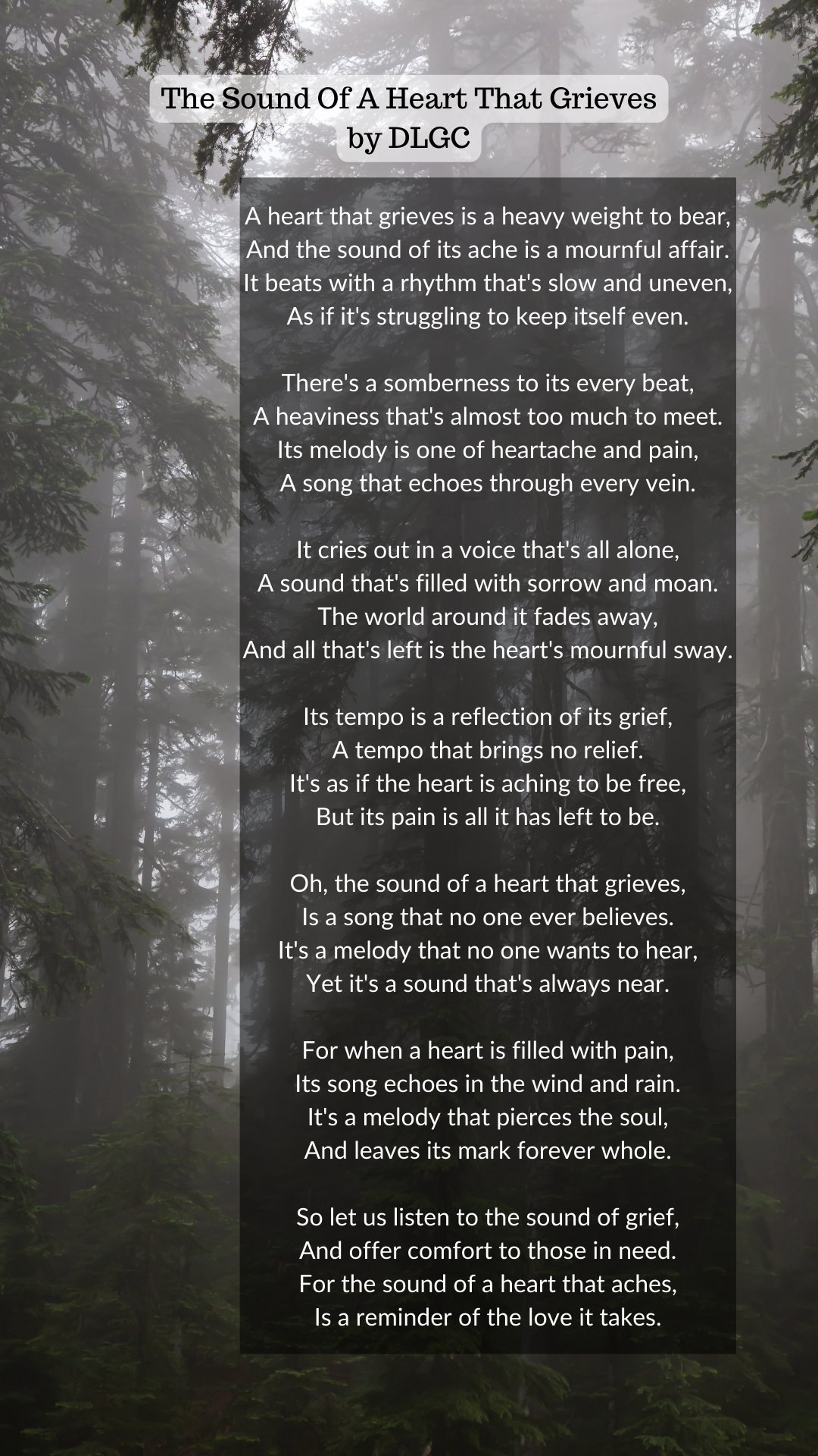 "The Sound Of A Heart That Grieves" is a ballad that delves deep into the raw emotions of heartache and sorrow. With poignant lyrics and a soulful melody, this song captures the weight of a grieving heart through its haunting acoustic guitar, tender piano, and subtle string arrangements. The chorus resonates with an aching beauty, offering a bittersweet reminder of the love and pain intertwined in human experience. This evocative track is perfect for moments of introspection and solace, enveloping the listener in its melancholic yet hopeful embrace.